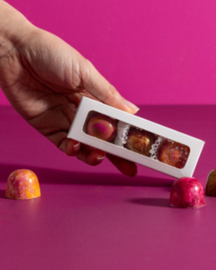 This Trio Makes A Perfect Little Treat!. Flavours Include Rose And Yuzu, Hazelnut, And Pink Gin And Raspberry